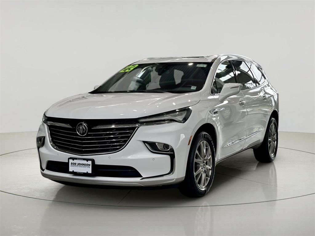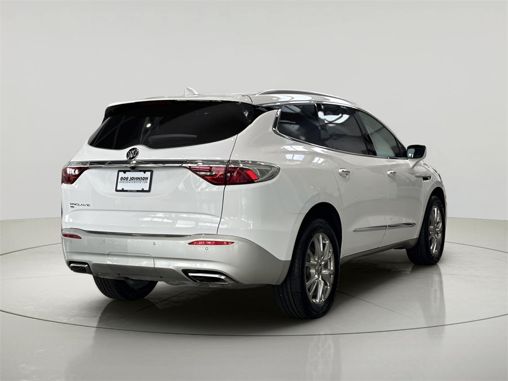 Summit White 2023 Buick Enclave Essence 3.6L V6 SIDI VVT AWD AWD, 20" Polished Aluminum Wheels, Experience Buick Package, Front & Rear Park Assist, Front Power Sliding Moonroof, Garage door transmitter, Heated front seats, Heated Steering Wheel, Power Liftgate, Preferred Equipment Group 1SL, Premium audio system: Buick Infotainment System, SiriusXM w/360L.