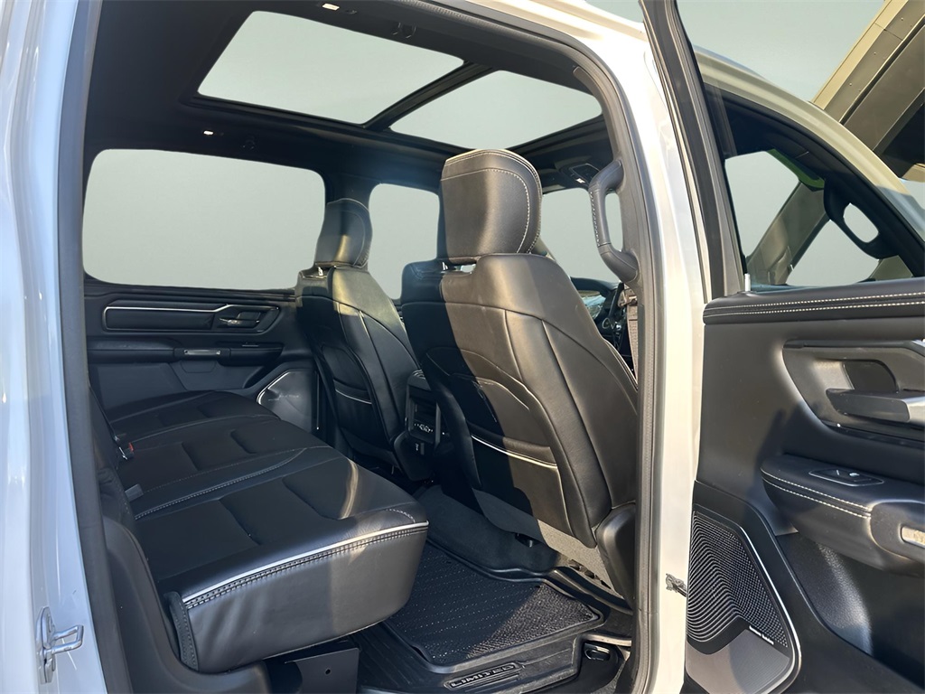 Ivory White Tri-Coat Pearlcoat 2020 Ram 1500 Limited HEMI 5.7L V8 Multi Displacement VVT 4WD Adaptive Cruise Control w/Stop & Go, AM/FM radio: SiriusXM with 360L, Audio memory, Dome Dual LED Reading Lamp, Dual-Pane Panoramic Sunroof, Full Speed Forward Collision Warning Plus, Heated front seats, Heated rear seats, Lane Keep Assist, LED Dome/Reading Lamp, Limited Level 1 Equipment Group, Memory seat, Navigation System, No Satellite Coverage w/HI/AK/PR/VI/GU, Parallel & Perp Park Assist w/Stop, ParkView Rear Back-Up Camera, Pedal memory, Quick Order Package 25M Limited, Radio: Uconnect 12 w/Navigation, Steering wheel mounted audio controls, Trailer Brake Control, Trailer Tow Group, Ventilated front seats, Ventilated Rear Seats, Wheels: 20" x 9" Polished w/Inserts. Odometer is 5083 miles below market average!