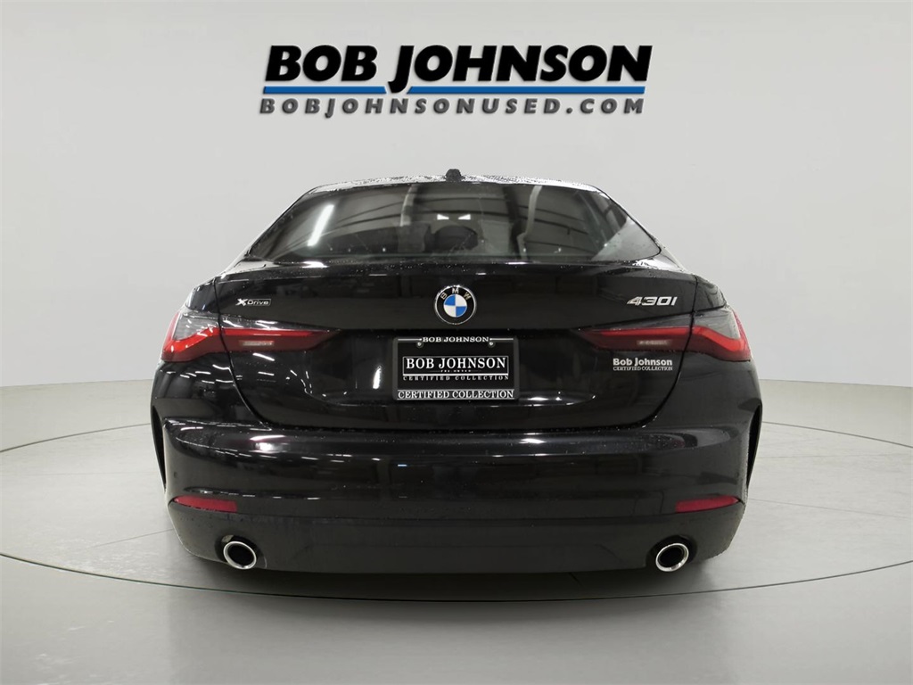 Certified.BMW 4 Series 430i XDrive Gran Coupe , stock number: U6173 located at Bob Johnson Certified Collection in Rochester, New York. Some of the stand out features and benefits of this nice pre-owned BMW 4 Series include: 10 Speakers, Ambient Lighting, Apple CarPlay & Android Auto Compatibility, Convenience Package, Exterior Parking Camera Rear, Front dual zone A/C, Heated Front Seats, Heated Steering Wheel, Illuminated entry, Live Cockpit Pro w/Navi, Navigation System, Power Liftgate, Power moonroof, Shadowline Exterior Trim.Certification Program Details: CarBravo Certified vehicles come with a standard limited warranty. 6-month/6,000-mile limited bumper-to-bumper warranty, with no deductible. Comprehensive 126 multi-point inspection by expert Certified Service technicians. A 10-day/500-mile vehicle exchange programBob Johnson Certified Collection is a stand-alone, pre-owned facility that rivals many franchise dealers' facilities. The selection and reconditioning process is unmatched and has set a new standard for pre-owned dealers entirely. Only the best-of-the-best qualify for our retail lot. While we see dozens of vehicles each day, only a few "make the team". This pre-owned 2023 BMW 4 Series is one of those few. Please verify the accuracy of information in regards to the actual vehicle equipment, miles, vehicle specifications, location, and vehicle price with dealer. For more information on this 4 Series, or to make an appointment call us at 585-339-2731 .Priced below KBB Fair Purchase Price!Black Sapphire Metallic2023 BMW 4 Series 430i XDrive Gran Coupe CarBravo Certified430i XDrive Gran Coupe2.0L 4-Cylinder DOHC 16V Turbocharged4D HatchbackAWD8-Speed Automatic Sport4 Series23/33 City/Highway MPG BMW 23/33 City/Highway MPG
