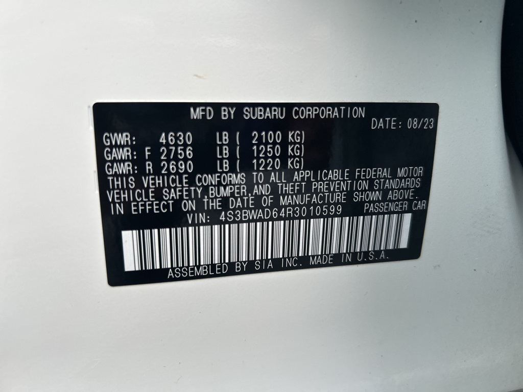 | GZ263190A | 4S3BWAD64R3010599 | Crystal White Pearl | Black |