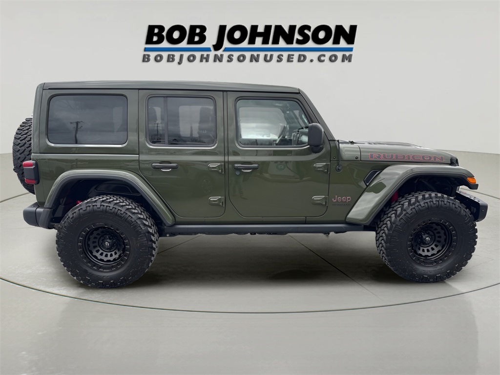 FRESH ARRIVAL, OVERSIZE TIRES, Wrangler Unlimited Rubicon LIFTED, 4WD, Sarge Green Clearcoat, 240 Amp Alternator, 7 & 4 Pin Wiring Harness, 700 Amp Maintenance Free Battery, Auxiliary Switches, Blind Spot & Cross Path Detection, Class II Receiver Hitch, ParkSense Rear Park Assist System, Quick Order Package 22R, Safety Group, Trailer Tow & HD Electrical Group. Sarge Green Clearcoat 2021 Jeep Wrangler Unlimited Rubicon LIFTED 4WD 8-Speed Automatic 2.0L I4 DOHC"Bob Johnson has got your ride" At Bob Johnson Auto Group we use a third party provider for our Market Value Pricing (MVP) that is constantly polling over 70,000 advertised used vehicles hourly to ensure our customers the most competitive price. Our managers adjust our prices daily accordingly. Recent Arrival! BOB JOHNSON CHEVY-BUICK FORD only keeps / acquires the very best inventory for our pre-owned selection. The selection and reconditioning process is unmatched and has set a new standard for pre-owned dealers entirely. While we see dozens of vehicles each day, only a few "make the lot". This is one of those few! Take advantage of this clean, long-lasting vehicle today! Please verify the accuracy of information regarding the actual vehicle equipment, miles, vehicle specifications, location, and vehicle price with dealer. For more information on this vehicle, or to make an appointment call us at 315-298-5181(chevy) 315-298-5114(ford)Recent Arrival!