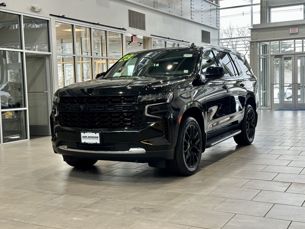 Black 2023 Chevrolet Tahoe LS EcoTec3 5.3L V8 4WD 4WD, Jet Black Cloth, 1st & 2nd Row Color-Keyed Carpeted Floor Mats, 3rd row seats: split-bench, ABS brakes, Apple CarPlay/Android Auto, Color-Keyed Carpeting Floor Covering, Driver & Front Outboard Passenger Airbags, Driver Alert Package, Floor Console w/Storage Area, Front 40/20/40 Split-Bench Seat, Frontal Airbags, Heated door mirrors, Lane Change Alert w/Side Blind Zone Alert, LED Daytime Running Lamps, Preferred Equipment Group 1LS, Rear Cross Traffic Alert, Remote Start, SiriusXM Radio w/360L, Wheels: 22" Multi-Spoke Gloss Black (LPO) (SRV), Wrapped Steering Wheel. Odometer is 18921 miles below market average!
