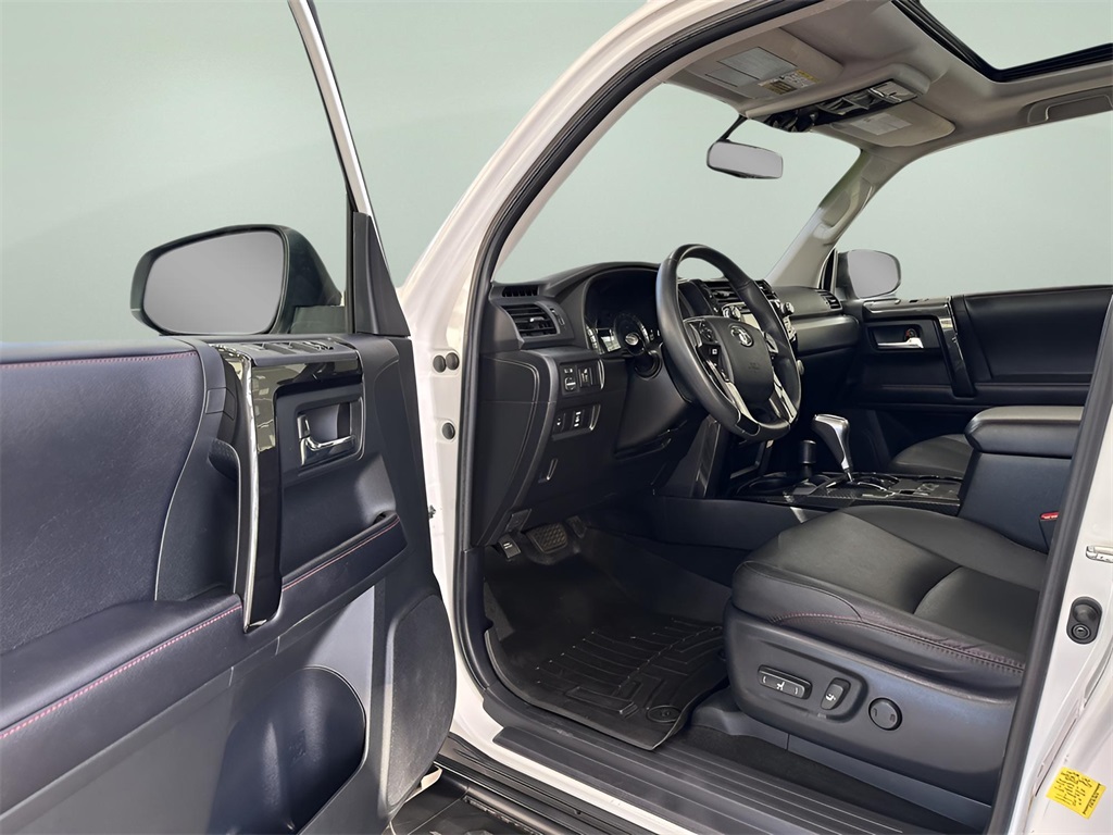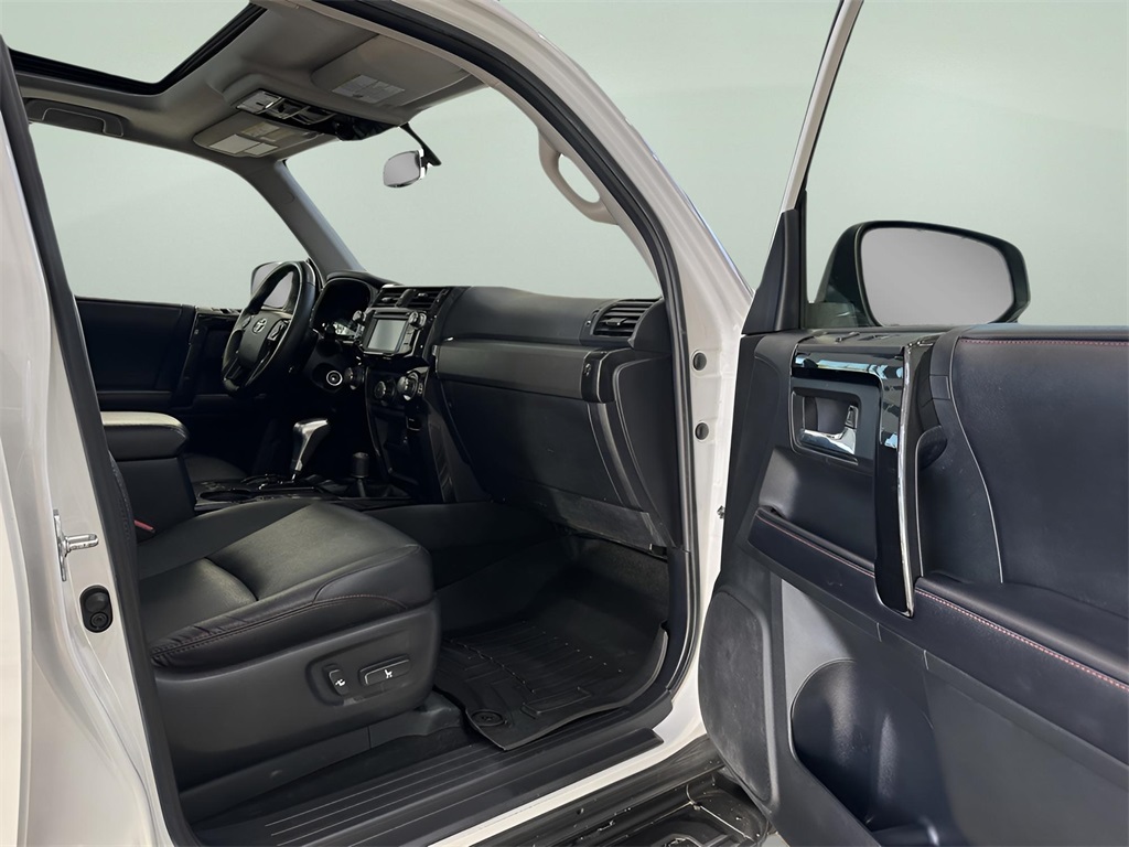 Super White 2018 Toyota 4Runner TRD Off-Road Premium 4.0L V6 SMPI DOHC 4WD 4WD, Black Graphite w/Softex Synthetic Leather Seat Trim, ABS brakes, Alloy wheels, Black Roof Rails, Body Color Heated Mirrors, Compass, Electronic Stability Control, Heated door mirrors, Heated Front Bucket Seats, Heated front seats, Illuminated entry, Low tire pressure warning, Moonroof w/Tilt Up & Slide, Off Road Package, Remote keyless entry, Traction control, TRD Performance Package (DISC), Wheels: 17" Gray TRD (PPO) (DISC). Odometer is 34646 miles below market average!