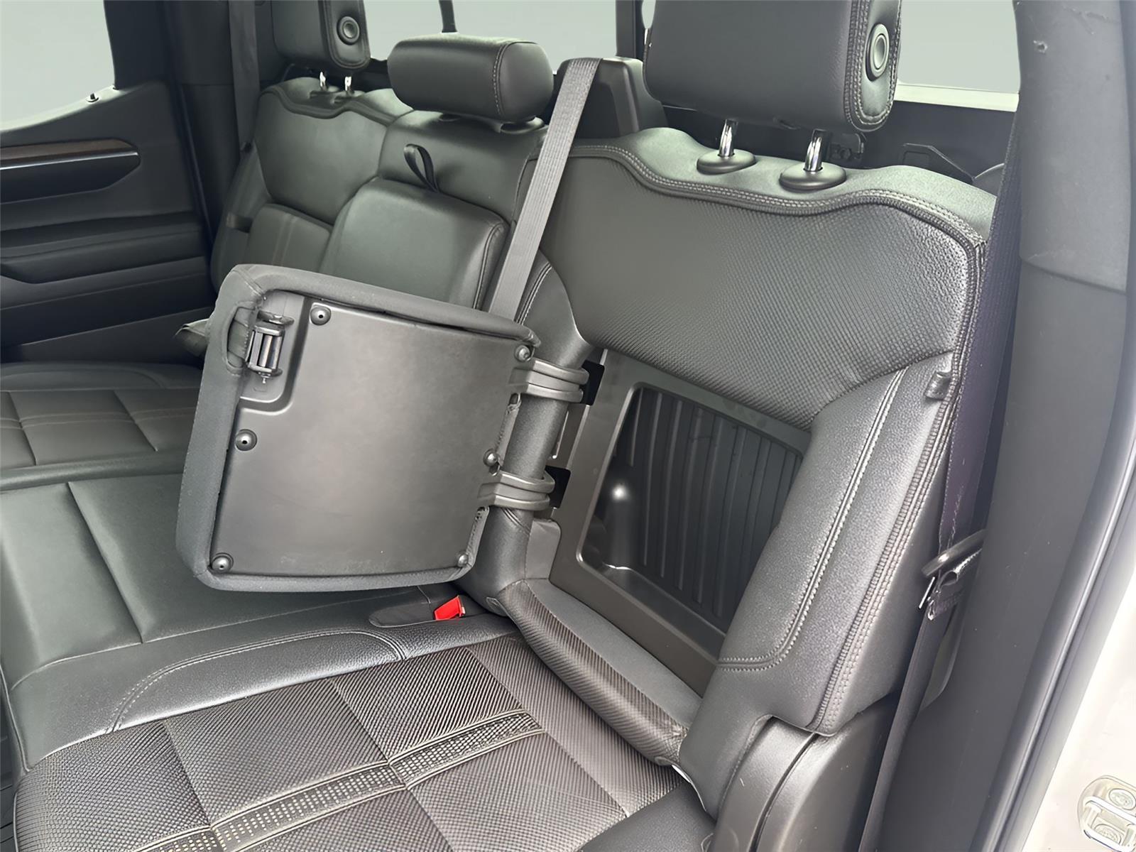 - Seat Up-level Rear with Storage Package 60/40 folding bench for Crew Cab models includes full-length bench seat seatback storage on left and right side centre fold out armrest with 2 cupholders full cab width underseat storage (includes child seat top tether anchor) (Rear seat features leather seating surfaces.)