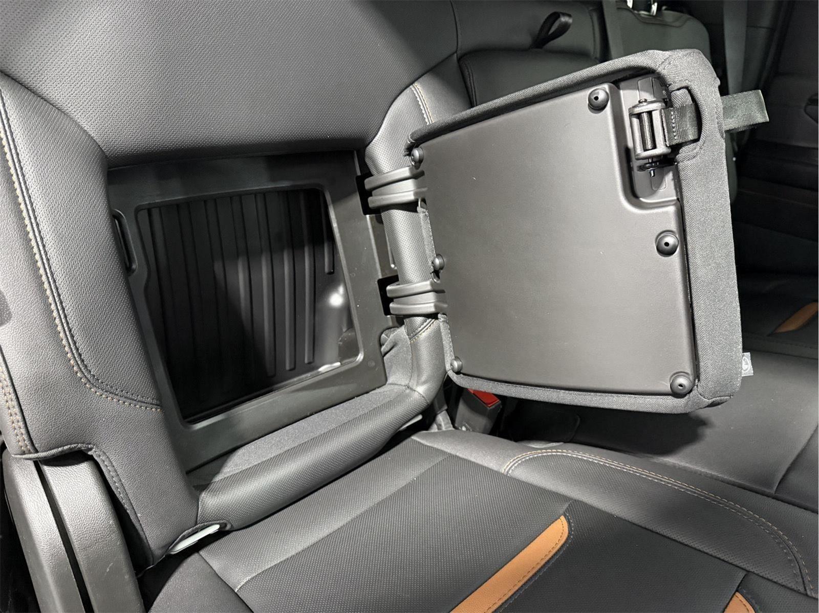 - Seat Up-level Rear with Storage Package 60/40 folding bench includes full-length bench seat seatback storage on left and right side center fold out armrest with 2 cupholders full cab width under-seat storage (includes child seat top tether anchor)
