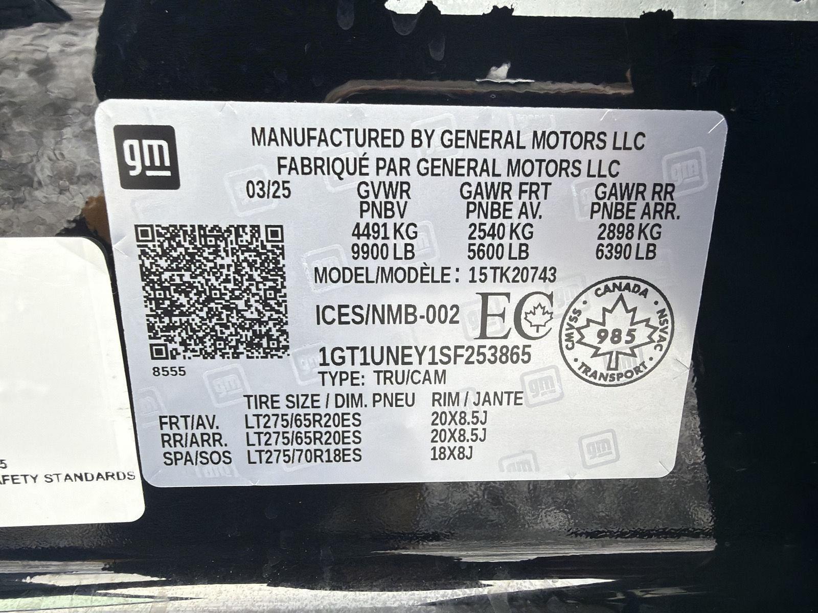 | PZ3264 | 1GT1UNEY1SF253865 | Onyx Black | Jet Black |