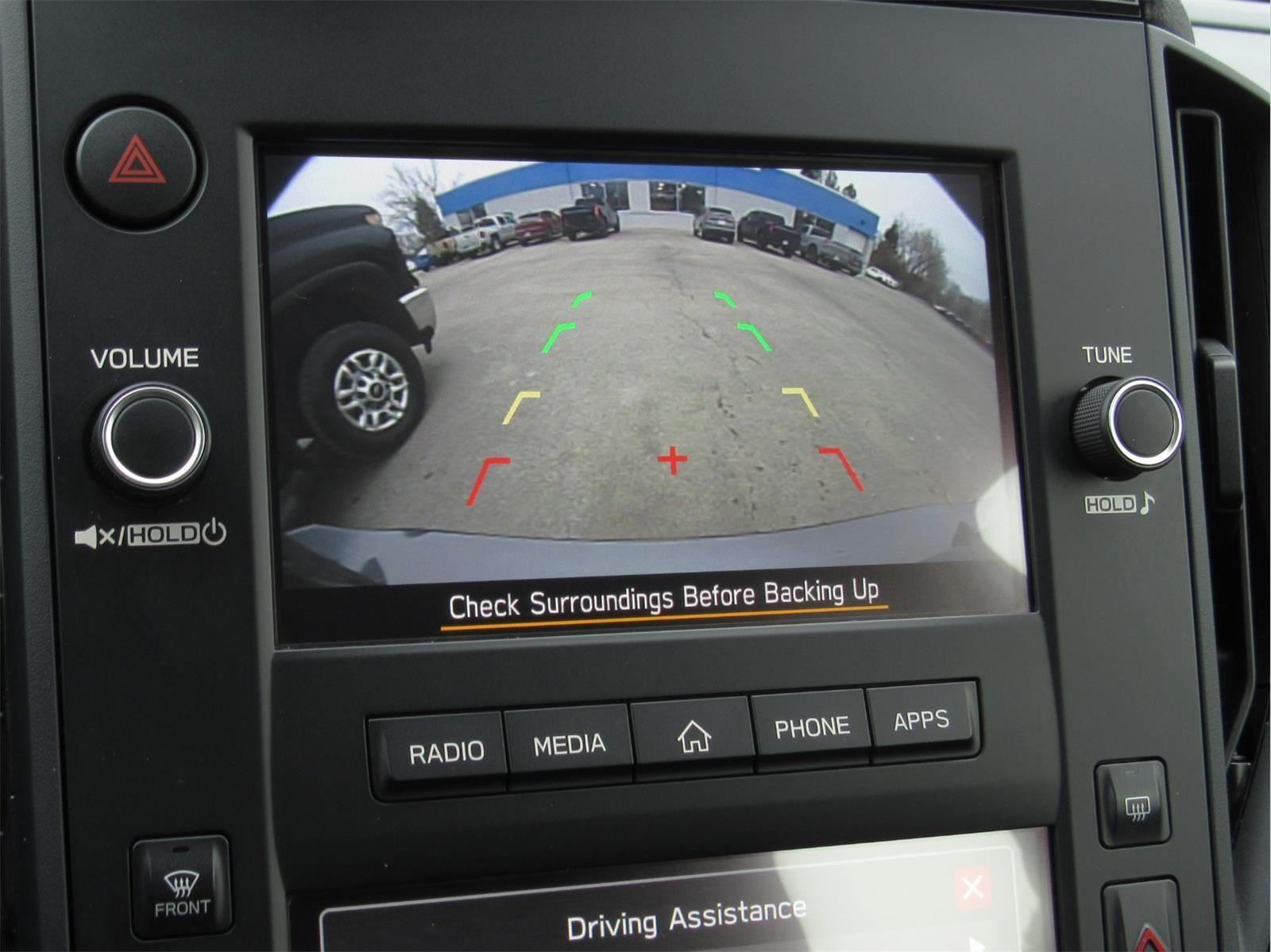 - The vehicle is equipped with a camera that displays an image of the area behind the vehicle on an interior display.