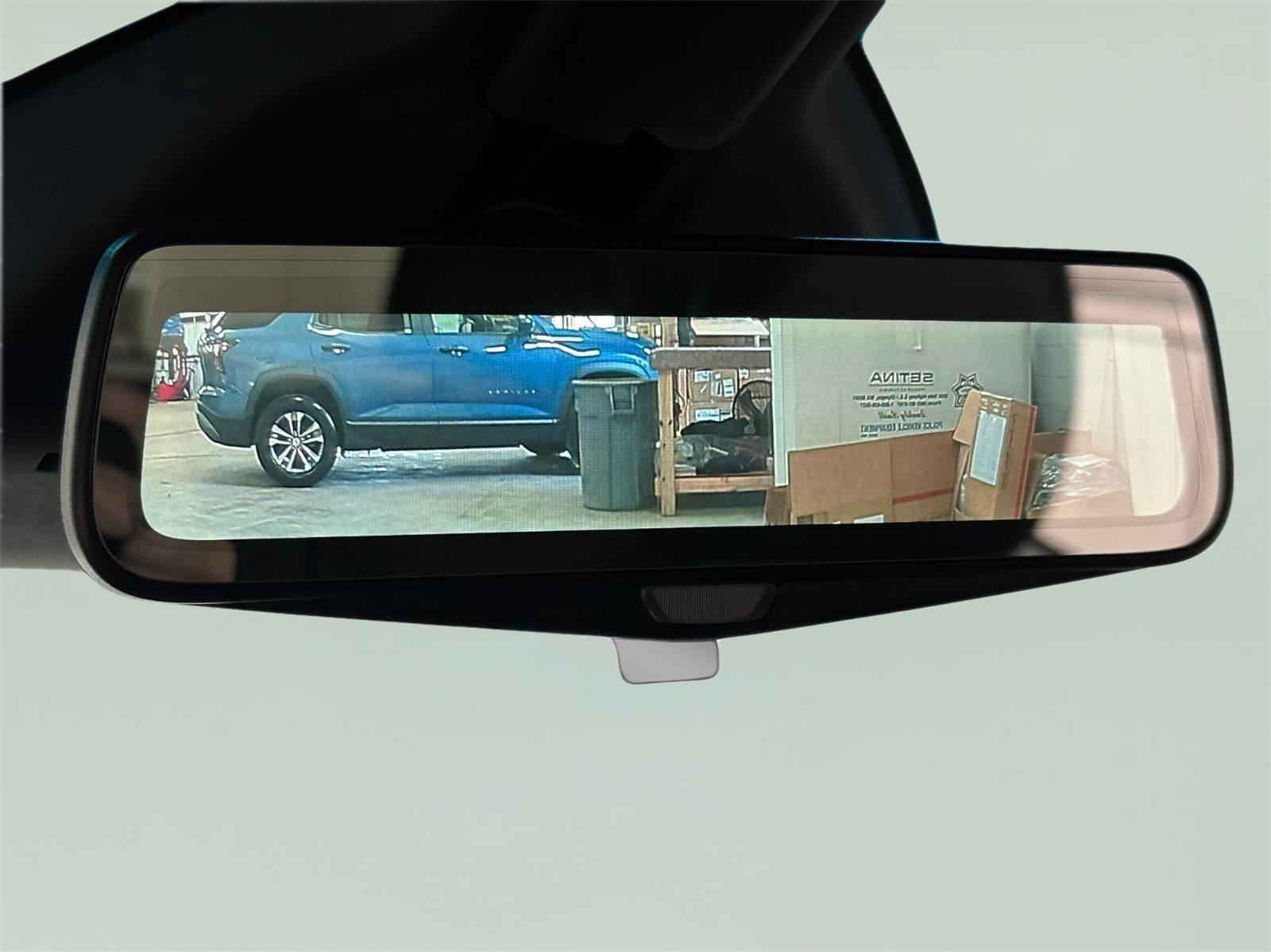 - The vehicle is equipped with a camera that displays an image of the area behind the vehicle on an interior display.