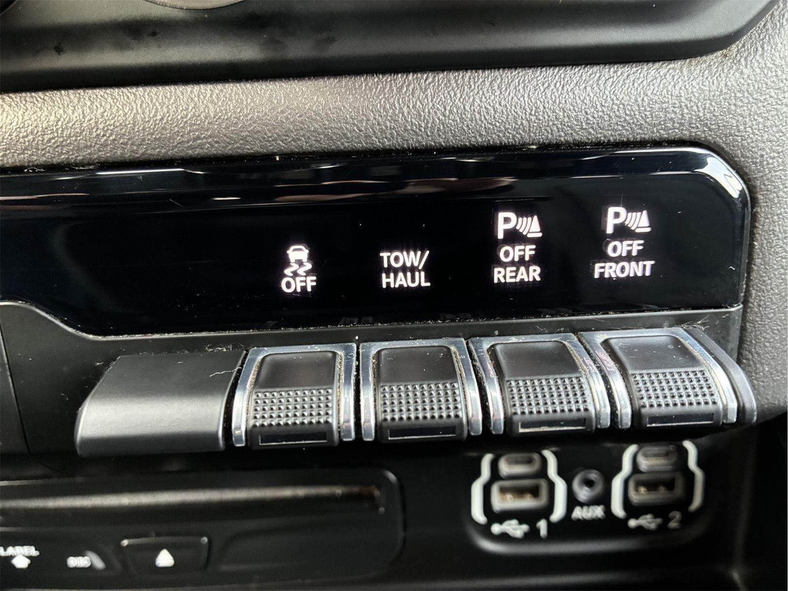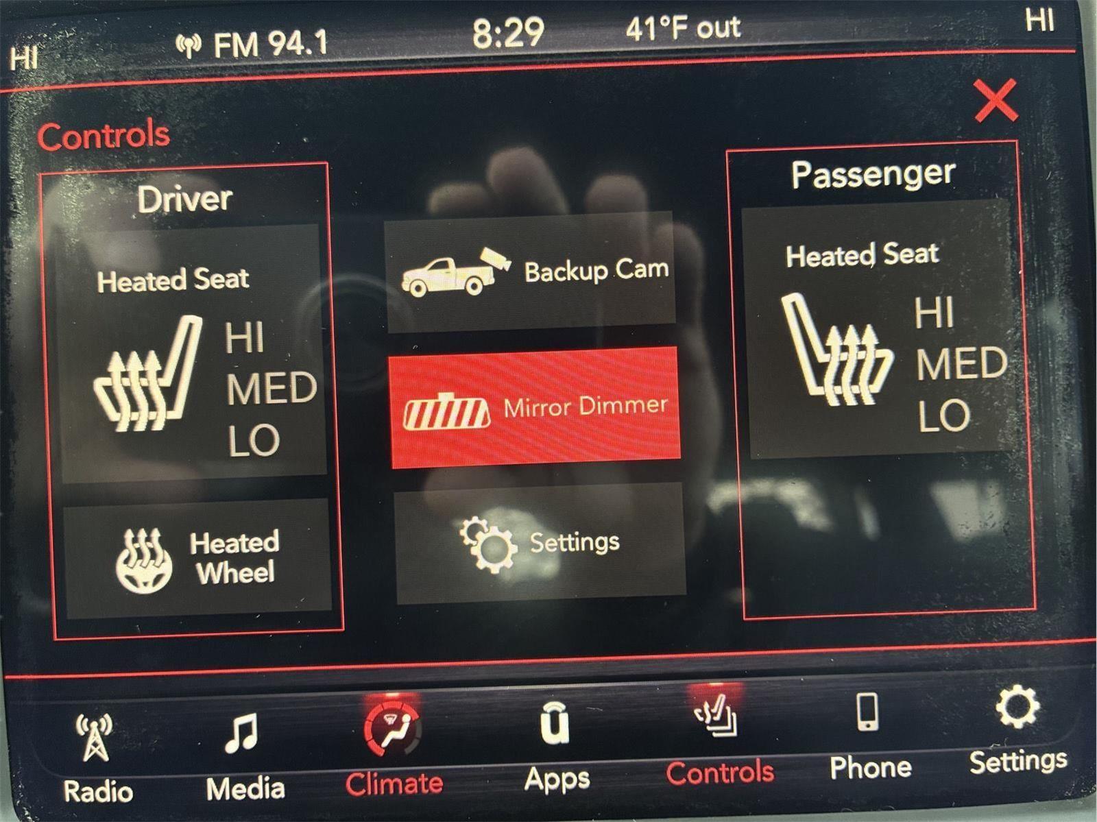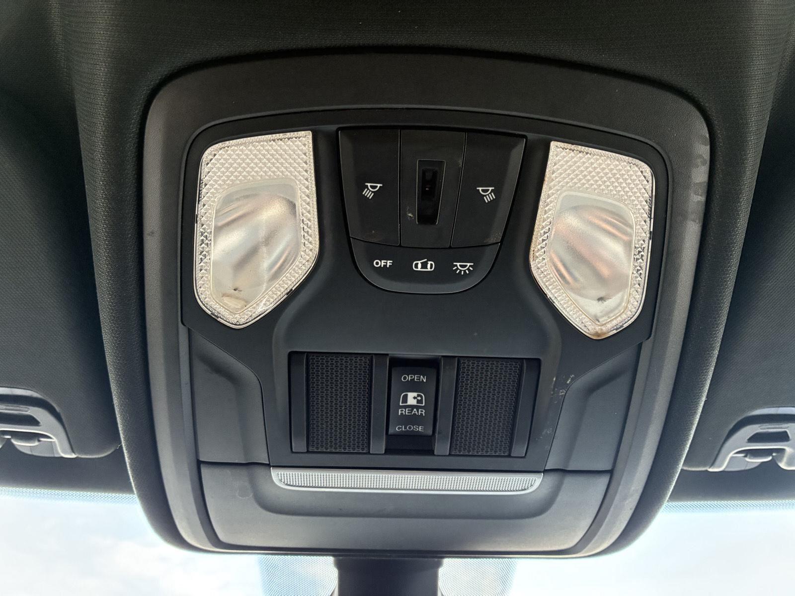 - Includes UConnect 4 with 8.4 inch touch screen display, Apple Carplay, Android Auto, AM/FM radio, single disc remote CD player, one year of SiriusXM Satellite Radio service, media hub with USB and auxiliary audio inputs, dual zone automatic climate control air-conditioning, remote start system, security alarm, universal garage door opener, front heated seats, 8-way power adjustable driver seat with power lumbar, heated steering wheel, power adjustable pedals, rearview auto-dimming mirror, Big Horn IP badge, dual sun visors with illuminating vanity mirrors, glove box lamp, power sliding rear window with defroster, power folding heated exterior mirrors with supplemental signals and courtesy lamps, auto-dimming driver exterior mirror, dampened tailgate, Class IV receiver hitch, rear dome light with on/off switch, and ParkSense front and rear park assist system w/stop.
